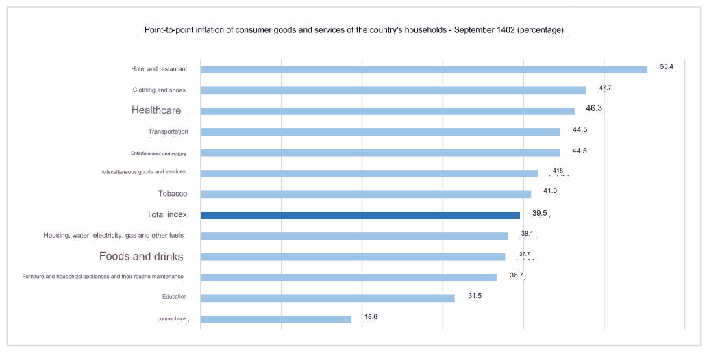 When set against Shahrivar of 1401, the rise is a substantial 39.5%. Over the twelve months culminating in Shahrivar 1402, the CPI has soared by 46.1% relative to the same period in the previous year.